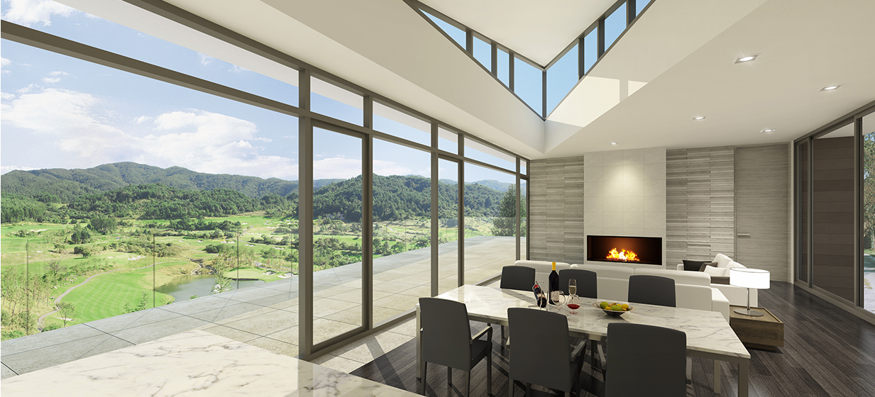 눈앞에 넓게 펼쳐지는 페어웨이, 언덕 위 전망대처럼 공중에 떠 있는 듯한 넓은 거실과 식당, 누구에게도 간섭받지 않고 자연을 누릴 수 있는 넓은 야외 테리스가 개방감을 극대화하였다.